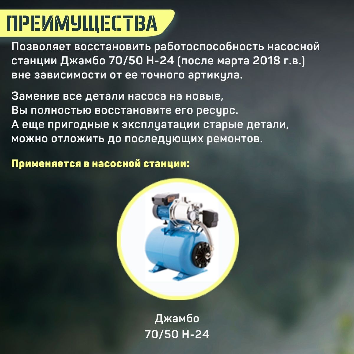 Если Ваша насосная станция выпущена до марта 2018г, то заменить нужно все элементы гидравлики, рекомендуем приобрести - Ремкомплект Джилекс Джамбо 70/50 Н-24 (RMKDZH7050N24).